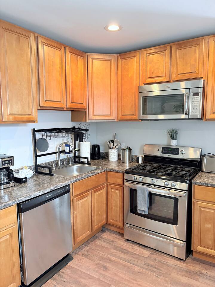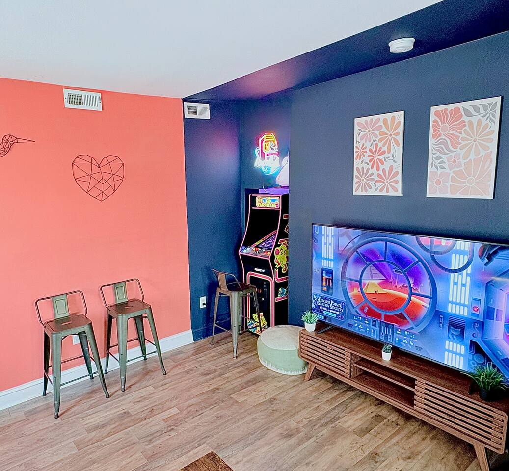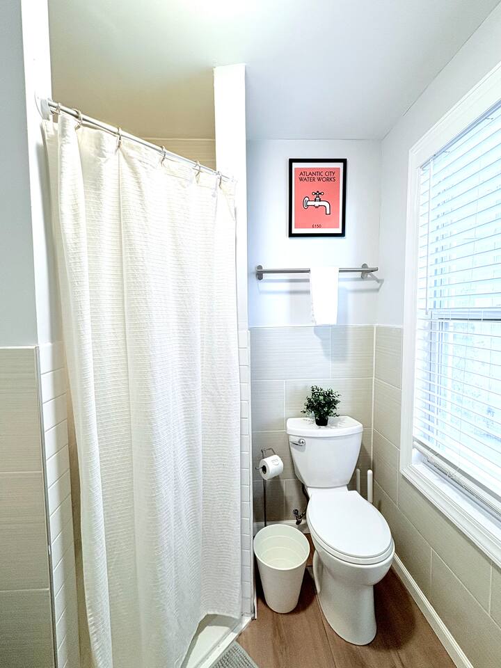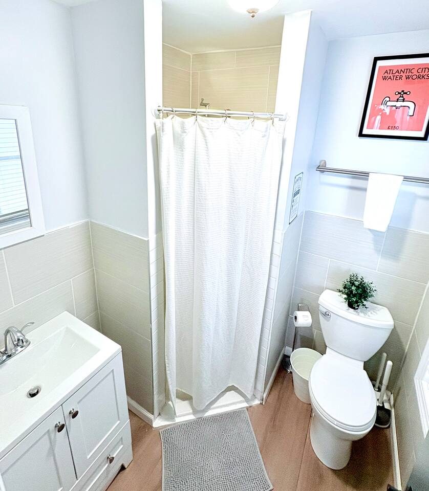 Your Atlantic City Escape: Perfect for Large Groups! Gather your favorite people and discover the excitement of Atlantic City from our spacious and updated two-family home! Offering the best of both worlds, this listing provides the privacy and comfort of two separate units, boasting a total of 9 bedrooms to comfortably accommodate your entire group. Unbeatable Location: Step outside and find yourself just 500 feet away from the iconic Atlantic City Boardwalk. Spend sun-kissed days on the city's beautiful free beaches and experience the vibrant nightlife and casino entertainment all within easy reach. Inside Your Home Away From Home: This expansive property features two distinct living spaces, each thoughtfully appointed for your comfort and convenience: First Floor (Ground Level): Three Comfortable Bedrooms: Each featuring a queen-sized bed. Well-Equipped Kitchen: Perfect for preparing meals together. Convenient Bathroom: Featuring a modern walk-in shower. Relaxing Living Room: Complete with a dining area and a 55" Smart TV for entertainment. Second Floor: Entertaining Living Room: Featuring a 55" Smart TV and a fun arcade machine for added enjoyment. Spacious Dining Room: Gather around the mid-century modern extendable table, comfortably seating up to 8 guests. Second Well-Equipped Kitchen: Includes a bar-height table with seating for 4. (We provide essential cooking tools; just bring your ingredients!) Modern Bathroom: With a convenient walk-in shower. Tranquil Bedroom: Furnished with a comfortable queen-sized bed with 42" Smart TV. Third Floor: This entire top floor is dedicated to restful nights, offering five additional bedrooms and a full bathroom: Bedroom 5: Queen bed plus a twin daybed with 42" Smart TV Bedroom 6: Twin-sized bunk beds and a separate twin bed (sleeps three). Bedroom 7: Comfortable full-sized bed. Bedroom 8: Relaxing queen-sized bed. Bedroom 9: Two comfortable queen-sized beds with 42" Smart TV Enjoy year-round comfort with our three-zone central HVAC system, ensuring the perfect temperature on every floor. Thoughtful Amenities: Stay Connected: Complimentary high-speed Wi-Fi. Entertainment at Your Fingertips: Five Smart TVs throughout the property. Fully Equipped Kitchens: Each kitchen includes a gas range, microwave, dishwasher, a full set of pots and pans, electric kettle, drip coffee maker, and more, making meal preparation a breeze. We Provide a Comfortable Start: Iron, ironing board, and hairdryer for your convenience. A few hangers in each closet. Starter supplies of paper towels and toilet paper. Complimentary shampoo, conditioner, body wash, and hand soap. Fresh bath towels and hand towels (please bring your own beach towels for enjoying the shore). Celebrate With Us! We warmly welcome groups celebrating bachelor and bachelorette parties, golf trips, business retreats, family reunions, and milestone birthdays! Let us know if you're celebrating, and we'd be happy to offer local recommendations to enhance your experience. Guest Access: Enjoy the privacy of separate access to both apartments via secure smart locks, accessible from the exterior. We kindly ask that you be mindful of our neighbors regarding noise, trash disposal, and parking. Complimentary Wi-Fi is provided. Parking is available on the street (please observe posted signs) or in a convenient paid lot just at the end of our block. Important Information to Note: - Parking: Please be aware that off-street parking is not included. While street parking is free, availability can vary. We do provide you with four parking passes that will allow you to park for free on Texas Avenue and other surrounding streets. A paid parking lot is conveniently located approximately 500 feet from the property for additional parking if needed. - Pet Policy: Well-behaved pets are welcome for an additional fee of $99 per pet, per stay. - Please inform us about your furry companions before finalizing your booking. - Entertainment: Each living room features a 55” Smart TV for streaming your favorite services (please note that cable TV is not provided). - Quiet Enjoyment: To ensure a peaceful environment for our neighbors, noise sensors are installed to monitor decibel levels (no audio is recorded). We kindly request that you respect quiet hours and avoid excessive noise, especially during late hours. - Age Requirement: In accordance with Atlantic City regulations, we are unable to rent to groups where all members are under the age of 21. We're excited to welcome you and ensure you have a memorable stay in Atlantic City!