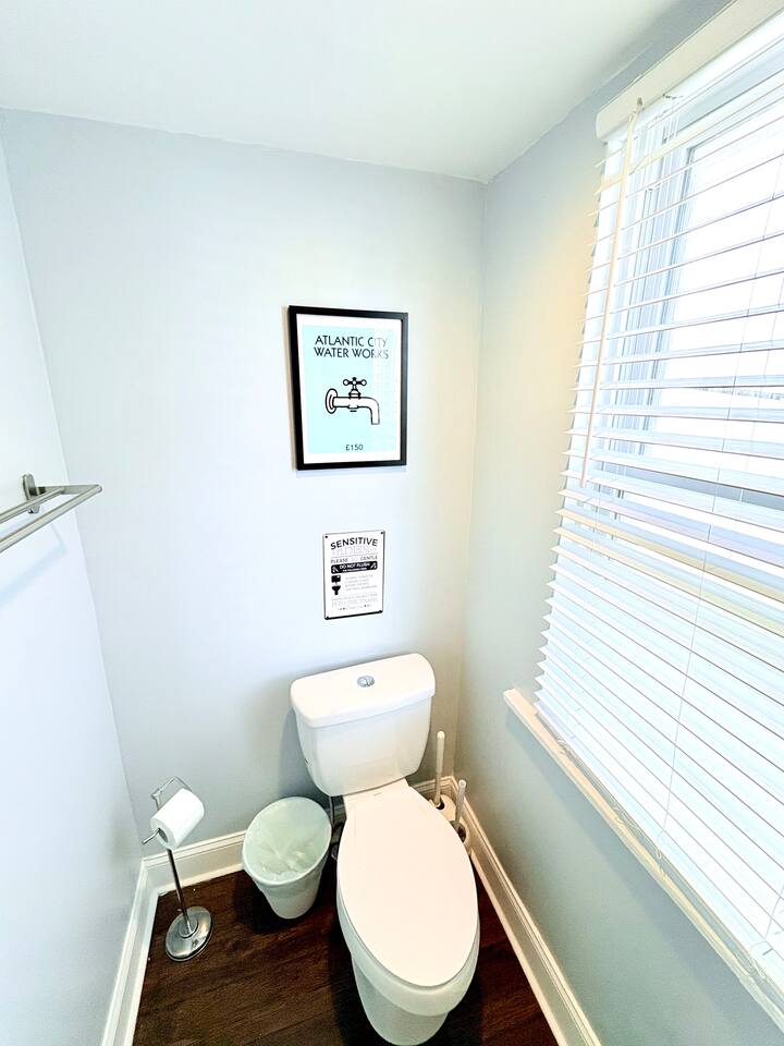 Gather your favorite people and discover the excitement of Atlantic City from our spacious and updated two-family home! Offering the best of both worlds, this listing provides the privacy and comfort of two separate units, boasting a total of 6 bedrooms to comfortably accommodate your entire group! Step outside and find yourself just a pleasant stroll away from the iconic Atlantic City Boardwalk. Spend sun-kissed days on the city's beautiful free beaches and experience the vibrant nightlife and entertainment of the Tropicana, all within easy reach. Inside Your Home Away From Home: This expansive property features two distinct living spaces, each thoughtfully appointed for your comfort and convenience: First Floor: - Entertaining Living Room: Featuring a 55" Smart TV and a fun arcade machine for added enjoyment. - Spacious Dining Room: Gather around the mid-century modern extendable table, comfortably seating up to 8 guests. - Second Well-Equipped Kitchen: Includes a bar-height table with seating for 4. (We provide essential cooking tools; just bring your ingredients!) - Modern Bathroom: With a convenient walk-in shower. - Bedroom 1: Furnished with a comfortable queen-sized bed. Second Floor: This entire top floor is dedicated to restful nights, offering five additional bedrooms and a full bathroom: - Bedroom 2: Queen bed plus a twin daybed. - Bedroom 3: Twin-sized bunk beds and a separate twin bed (sleeps three). - Bedroom 4: Comfortable full-sized bed. - Bedroom 5: Relaxing queen-sized bed. - Bedroom 6: Two comfortable queen-sized beds. Enjoy year-round comfort with our three-zone central HVAC system, ensuring the perfect temperature on every floor. Thoughtful Amenities: - Stay Connected: Complimentary high-speed Wi-Fi. - Entertainment at Your Fingertips: Six Smart TVs throughout the property. - Fully Equipped Kitchen: includes a gas range, microwave, dishwasher, a full set of pots and pans, electric kettle, drip coffee maker, and more, making meal preparation a breeze. We Provide a Comfortable Start: - Iron, ironing board, and hairdryer for your convenience. - A few hangers in each closet. - Starter supplies of paper towels and toilet paper. - Complimentary shampoo, conditioner, body wash, and hand soap. - Fresh bath towels and hand towels (please bring your own beach towels for enjoying the shore). Celebrate With Us! We warmly welcome groups celebrating bachelor and bachelorette parties, golf trips, business retreats, family reunions, and milestone birthdays! Let us know if you're celebrating, and we'd be happy to offer local recommendations to enhance your experience. Guest Access: Enjoy the privacy of separate access to both apartments via secure smart locks, accessible from the exterior. We kindly ask that you be mindful of our neighbors regarding noise, trash disposal, and parking. Complimentary Wi-Fi is provided. Parking is available on the street (please observe posted signs) or in a convenient paid lot just at the end of our block. Important Information to Note: - Parking: Please be aware that off-street parking is not included. While street parking is free, availability can vary. A paid parking lot is conveniently located approximately 500 feet from the property. - Pet Policy: Well-behaved pets are welcome for an additional fee of $99 per pet, per stay. Please inform us about your furry companions before finalizing your booking. - Entertainment: Each living room features a 55” Smart TV for streaming your favorite services (please note that cable TV is not provided). - Quiet Enjoyment: To ensure a peaceful environment for our neighbors, noise sensors are installed to monitor decibel levels (no audio is recorded). - We kindly request that you respect quiet hours and avoid excessive noise, especially during late hours. - Age Requirement: In accordance with Atlantic City regulations, we are unable to rent to groups where all members are under the age of 21. We're excited to welcome you and ensure you have a memorable stay in Atlantic City!